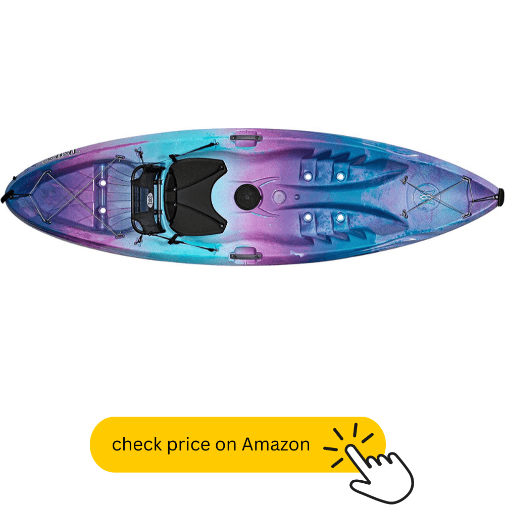 The perception Tribe sit-on-top kayak is one of the best kayaks on the market. It is perfect for beginner to intermediate kayakers. The kayak has an adjustable seatback, molded knee/thigh areas, and integrated footrests to help you paddle with comfort. It also has a front and rear tank well storage with bungee ties and a center storage hatch with a built-in drink holder. The bow and stern also have toggle handles for easy carrying. The kayak is 9'5" long and 31-1/4" wide. It weighs 46 lbs and can hold up to 300 lbs. The scupper holes provide drainage while still allowing your boat to remain buoyant. This kayak is perfect for lakes, ponds, rivers, and streams.