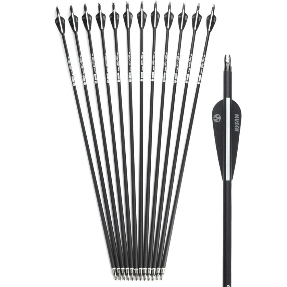 For archers on a budget who refuse to sacrifice quality for affordability, the Musen Carbon Archery Arrows are a standout option. These hunting arrows have earned a reputation for consistent accuracy and durability, making them a favorite among experienced hunters and novice archers alike. The carbon construction provides a lightweight and sturdy design that can withstand hard use, and the black and white fletching provides a unique look that sets them apart from the competition. Whether you're hunting game or practicing your shot, the Musen Carbon Archery Arrows deliver the performance you need at an unbeatable value.