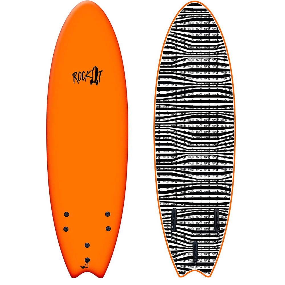 The Rock-It 6' Albert Surfboard is the perfect starter board that we absolutely adore. Its soft-top design means that beginners won't have to worry about getting their teeth knocked out with a hard surfboard, which can be a major concern in the early stages of learning to surf. Although it can be a little difficult to surf unless you have some experience and can catch at least a 3-foot wave, it still makes for a fantastic extra-large boogie board. The great, well-made soft top looks amazing and surfs just as well as a traditional board. Additionally, the flexible and soft fins are highly functional and help make this board one of the best out there. One caveat: it can be a little slippery without extra grips, but overall this board is a fantastic investment for anyone looking to learn to surf.
