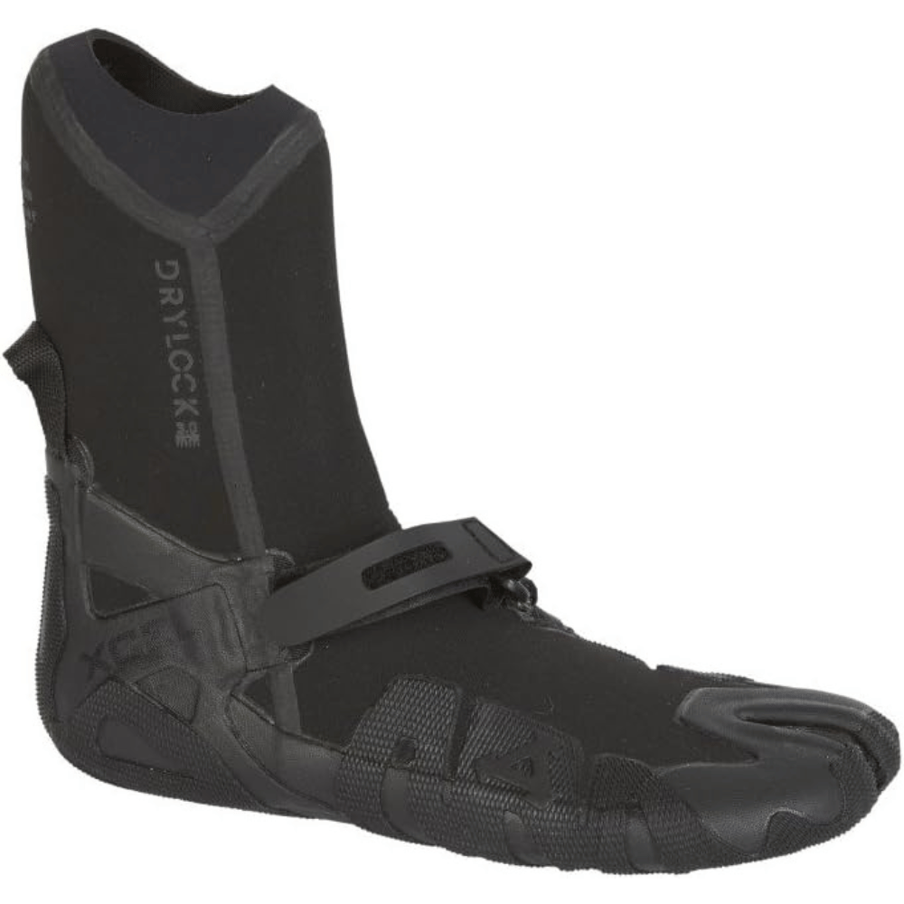 Surfers looking for a light and breathable bootie have found their perfect fit in the XCEL Drylock Split Toe Booties. This 3-dimensional split toe design boot ensures an exact contoured fit for the foot, while also minimizing excess bottom rubber to provide an unbeatable board feel. The boot's celliant black with channel flex allows for maximum warmth and comfort, while the drylock cuff opening prevents water flushing and keeps your feet warm in water temperatures between 49˚ and 58˚F. Additionally, it features an ergonomic strap that snugly supports your heel in the pocket and relieves pressure while its pull-up ankle loop makes entry easy. The taitex outer seams and taped seams provide ultimate durability to this exceptional surf bootie. With these features, rest assured that XCEL has provided surfers with a trusty ally when surfing out on the waves.