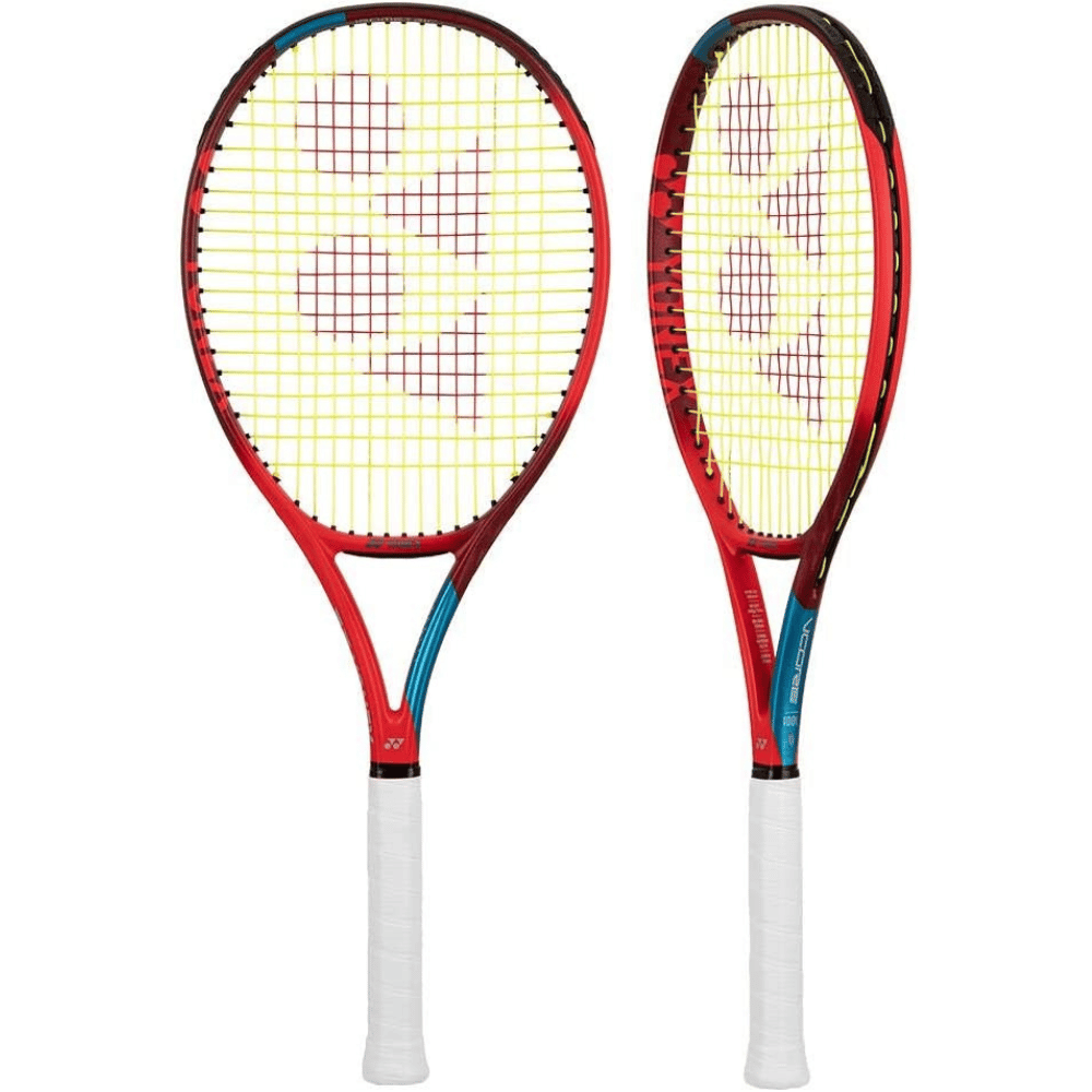 YONEX VCORE 100L Tennis Racquet is here to save your spin game! This racquet is a literal dream come true for any tennis player, regardless of their skill level. It's light-weight enough that you won't even know it's there — yet it can drive through the ball like a heavyweight. You'll be able to hit powerful serves and spin shots without expending ridiculous amounts of effort. If you're looking for an extra thrill; Fuhgettaboutit! The Vcore racquet is so lively and responsive that your groundstrokes will soar to new heights with ease. This amazing racquet also looks great, so you get your stomp on with YONEX VCORE 100L Tennis Racquet.