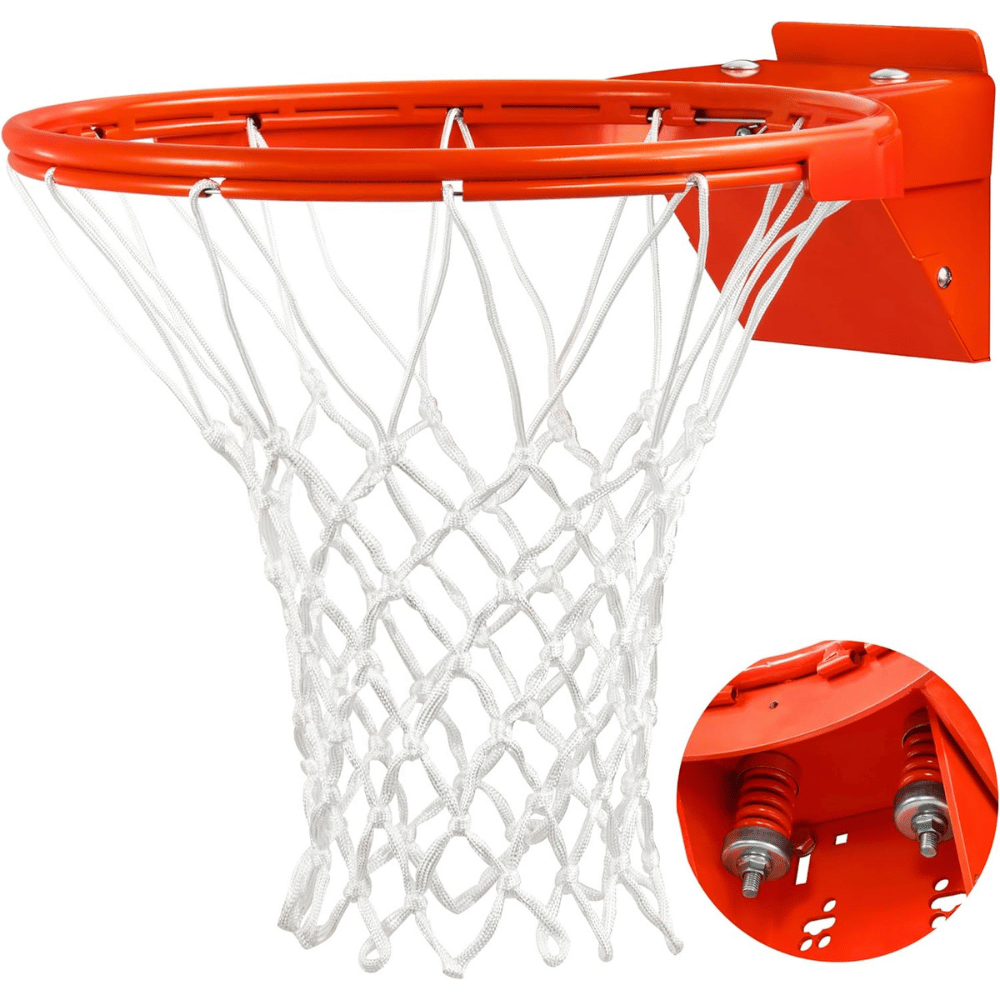 The VosonBell Basketball Rim boasts a universal hole pattern that is compatible with most backboards for easy installation. Its double spring breakaway rim design ensures maximum player safety, flexing down when a player hangs on it and quickly snapping back up when released. With two return springs encased inside, this heavy-duty rim can withstand even the most aggressive level of play, without fail or deformation. The fully adjustable rim also features a concealed, shock-absorbing release/return mechanism, all within a waterproof and UV-resistant design. Made from the thickest and highest-quality polyester fibers, the VosonBell anti-whip net technology also helps prevent tangles. Overall, the VosonBell Basketball Rim is a reliable and durable option for basketball enthusiasts of all levels.