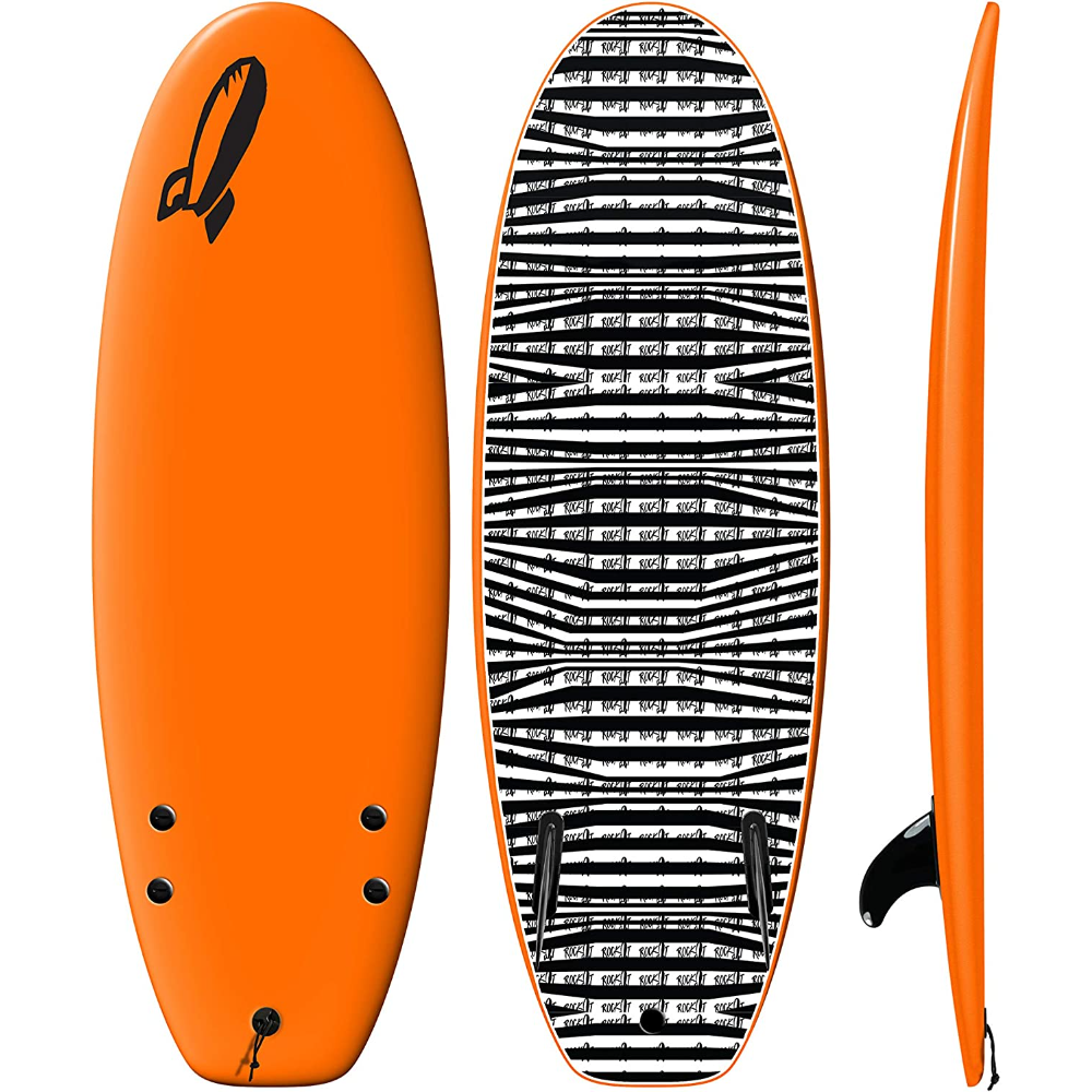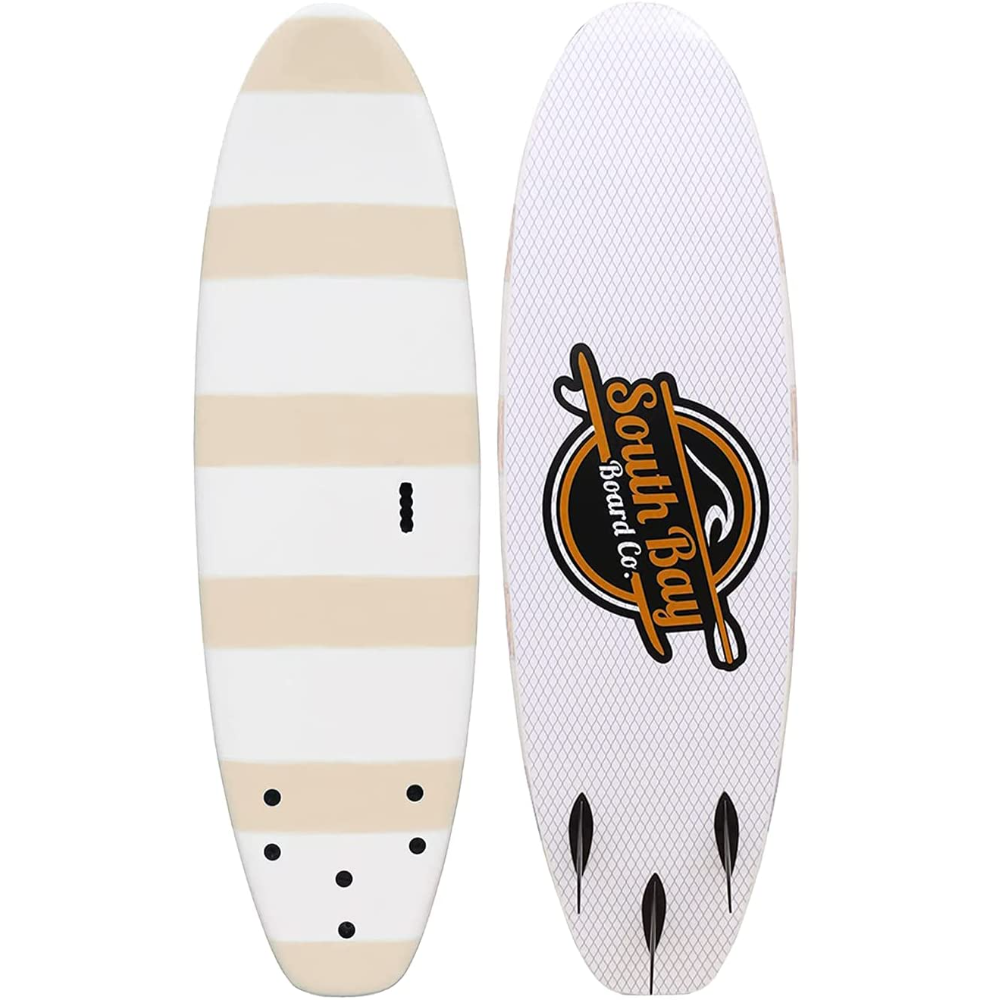 When it comes to finding the best budget shortboard surfboard, the South Bay Board Co.'s 6' Guppy model should definitely be on your radar. This lightweight board weighs in at only 10lbs and comes equipped with everything you need to hit the waves, including soft-top surfboard fins and a leash. But it's not just the features that make this board stand out. Its rounded nose and nose rocker help prevent nose-diving, while the widened chest area makes it easier to pop up. The classic squash tail allows for cleaner turns, and the fast flat bottom deck ensures speed in small waves. Plus, with an off-set paint stripe design on the soft IXPE foam top deck, an EPS closed cell foam core with one fiberglass rod and two wooden stringers, and an impact-netting HDPE plastic bottom deck for extra durability, the South Bay Board Co. 6' Guppy is both functional and stylish.
