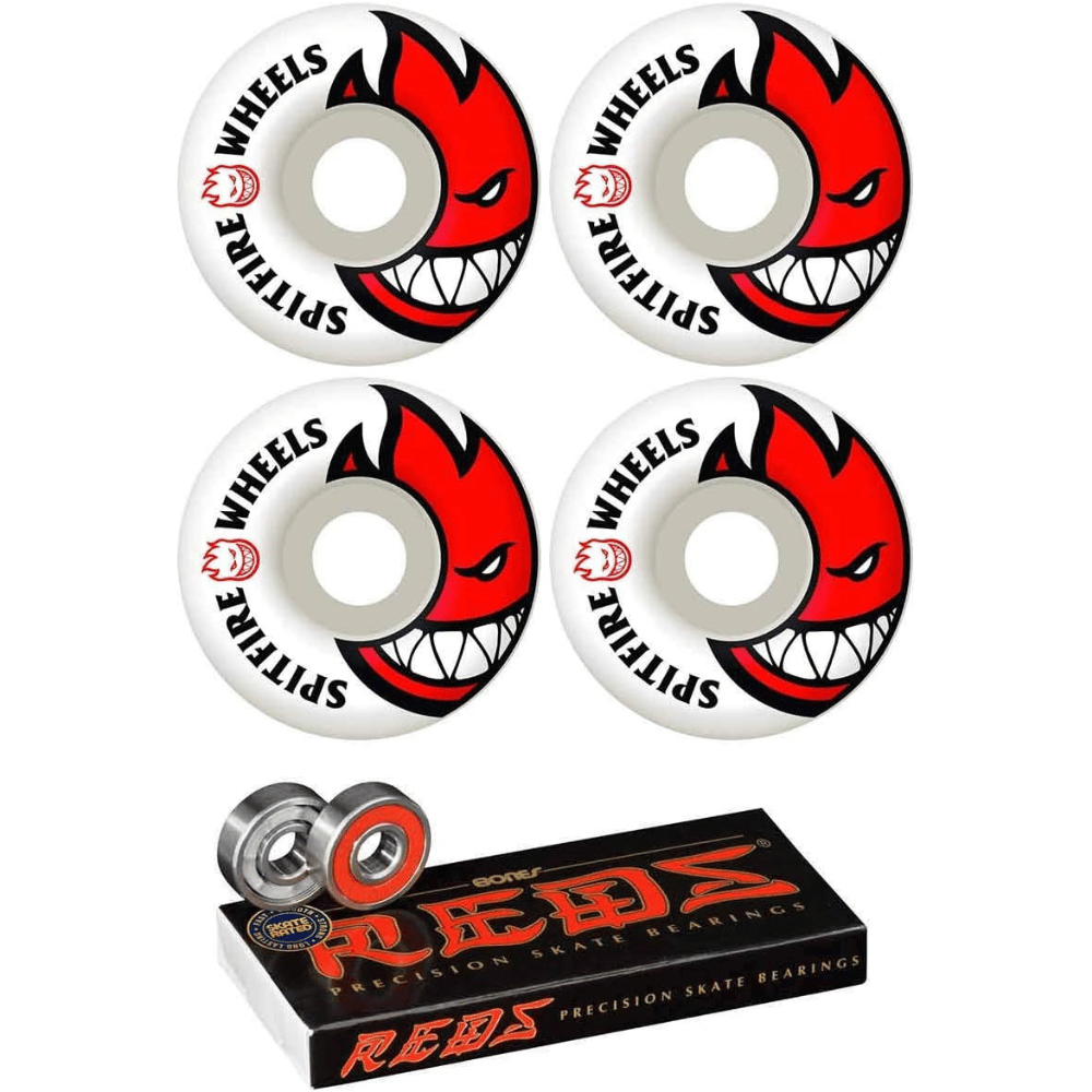 Introducing the ultimate skateboarding combo: Spitfire 52mm Bighead Skateboard Wheels paired with the renowned Bones Reds Bearings. This dynamic duo is a skater's dream come true. The Spitfire wheels, sized at 52mm and featuring the iconic Bighead graphic in White/Red, offer a versatile 99a durometer for optimal grip and slide on any terrain. Paired with the precision-engineered Bones Reds Bearings, your ride becomes smoother, faster, and more reliable. This bundle is a must-have for enthusiasts and pros alike, ensuring top-notch performance with every trick. Elevate your skate game with the Spitfire-Bones combo – where style meets substance, now available in a convenient 8-pack!