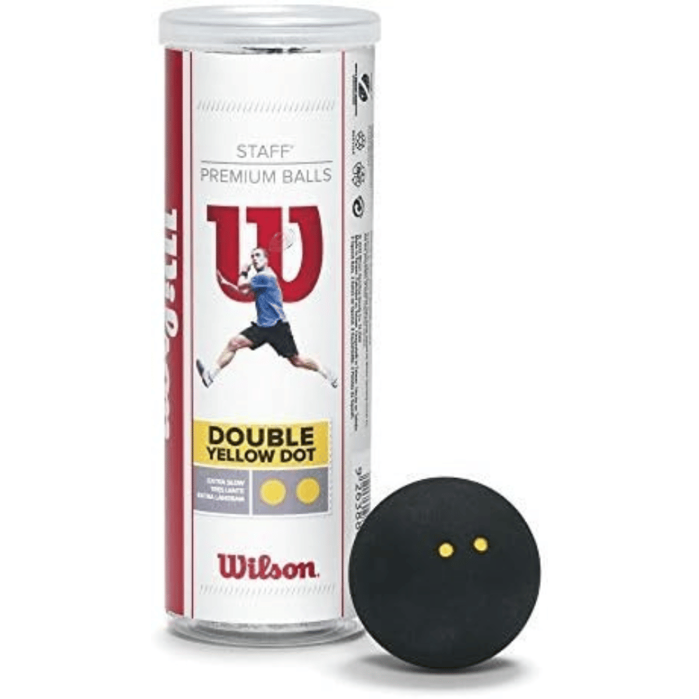 For seasoned and competitive players of any gender, Wilson's Staff Squash Balls are the best option. Once the ball is properly warmed up, they are perfect for challenging matches because of their reduced bounce and lower speed, which is indicated by their double yellow dot designation. Because of the superior rubber compound used in these balls, they will remain incredibly durable even after prolonged play. Two black squash balls with a yellow II difficulty level dot are included in each package. Note that packaging may differ.
