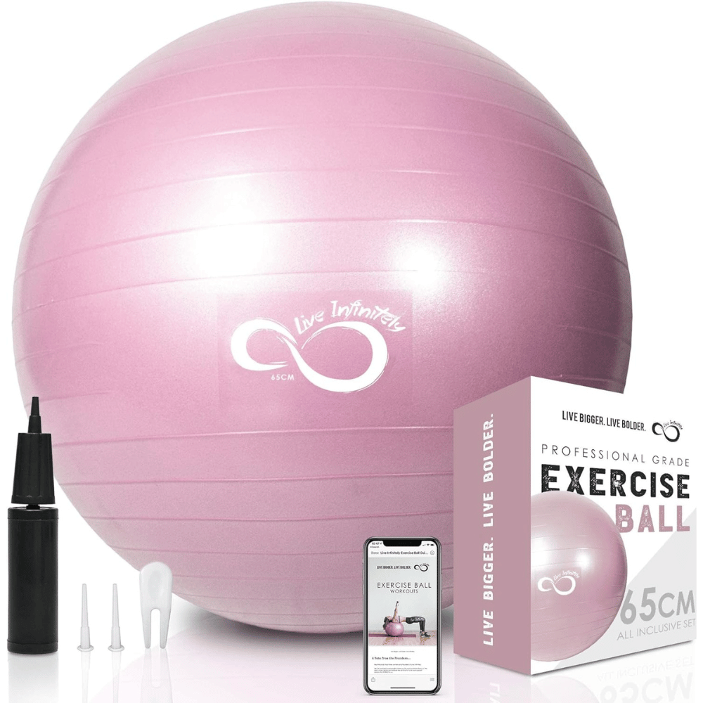 The Live Infinitely Exercise Ball is great for those who want a versatile and durable stability ball. It's great for core workouts, stretching, and even as a substitute for chairs. They also have a hand pump made inflation quick and easy, and the ball is incredibly durable. You can incorporate it into my daily workouts, and improve your core strength.